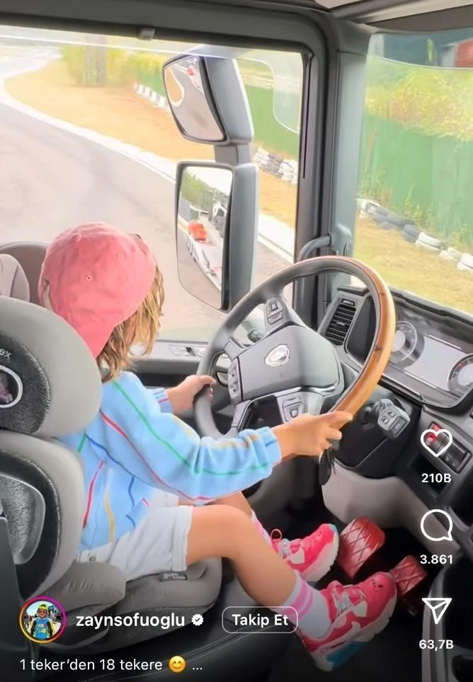 Türkiyənin milli motosikletçisi Kənan Sofuoğlunun 4 yaşlı oğlu Zayn Sofuoğlu bu dəfə atasının 20 metr uzunluğundakı TIR-nı idarə edib.