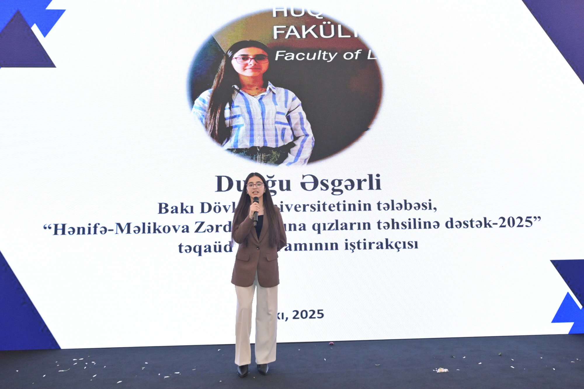 O, ali təhsilli qadınların sayının artmasının uşaqların təhsilinə, gələcək inkişafına, eləcə də cəmiyyətin və ölkənin tərəqqisinə müsbət təsir göstərdiyini söyləyib. Təhsilin İnkişaf Fondunun İdarə Heyəti sədrinin vəzifələrini müvəqqəti icra edən İlqar Bayramlı bildirib ki, bu il “Hənifə Məlikova - Zərdabi adına təqaüd proqramı” çərçivəsində 93 tələbə qız təqaüd dəstəyi almaq imkanı əldə edib. O, layihənin icrası dövründə ümumilikdə 300-ə yaxın tələbənin bu proqramda iştirak etdiyini deyib. Əlavə edib ki, indiyədək Fond tərəfindən həyata keçirilən təqaüd proqramlarına 3 mindən çox müraciət daxil olub və 400-dən artıq tələbə qız bu layihələrdə iştirak edib. İ.Bayramlı, Fondun bu təşəbbüsünü həm strateji bir hədəf, həm də böyük məsuliyyət kimi qiymətləndirildiyini vurğulayıb. Mərasimdə təqaüd proqramının iştirakçısı, Bakı Dövlət Universitetinin Hüquq fakültəsinin tələbəsi Duyğu Əsgərli də çıxış edərək layihənin gənc qızların təhsil imkanlarının genişləndirilməsi baxımından əhəmiyyətini vurğulayıb.