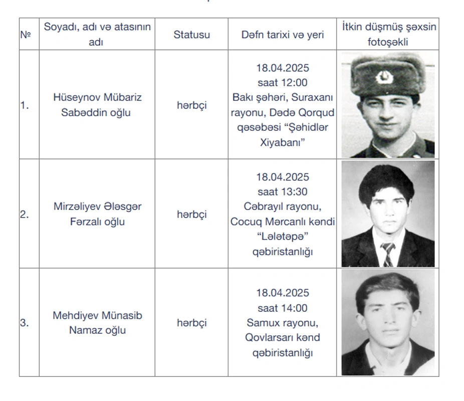 Daha 3 itkin-şəhid dəfn ediləcək - FOTO