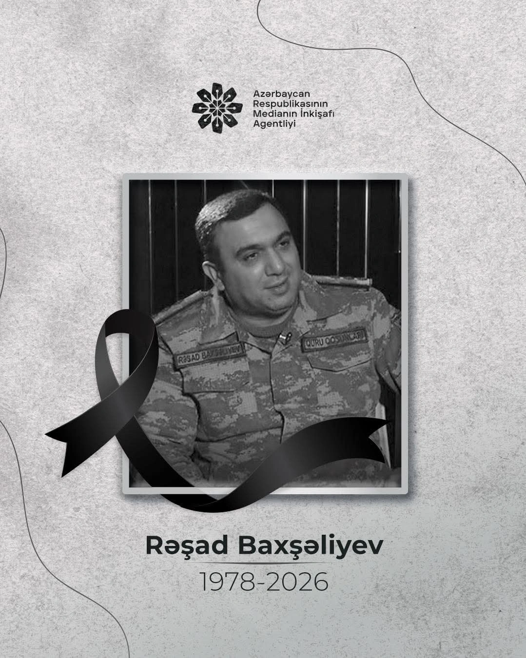 “Medianın İnkişafı Agentliyinin rəhbərliyi və kollektivi tanınmış jurnalist, Vətən müharibəsi iştirakçısı Rəşad Baxşəliyevin vəfatından kədərləndiyini bildirir, mərhumun ailəsinə dərin hüznlə başsağlığı verir. Allah rəhmət eləsin”.