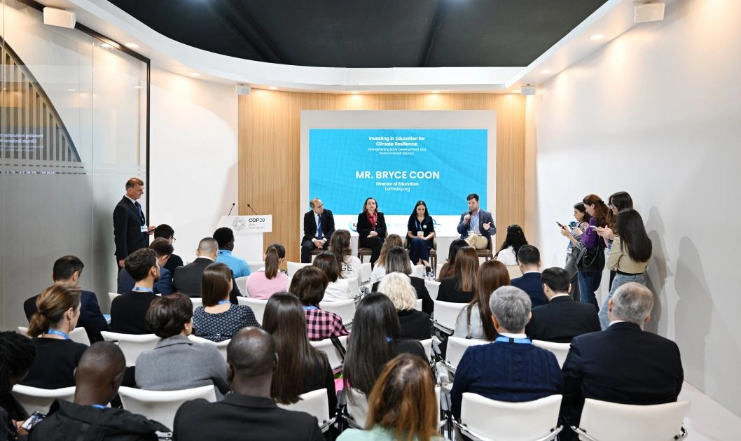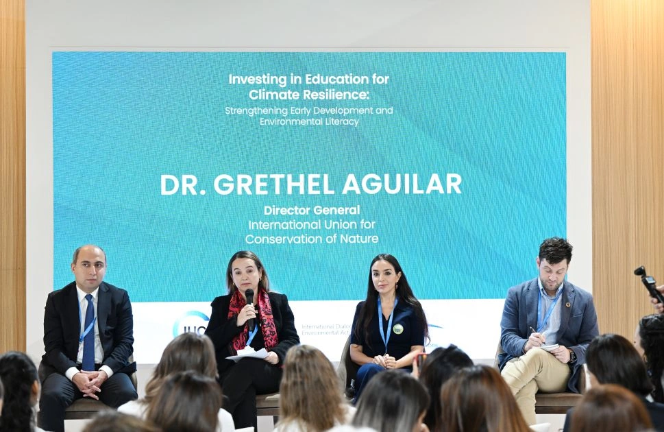 Heydər Əliyev Fondunun vitse-prezidenti, IDEA (Ətraf Mühitin Mühafizəsi Naminə Beynəlxalq Dialoq) İctimai Birliyinin təsisçisi və rəhbəri Leyla Əliyeva Beynəlxalq Təbiəti Mühafizə İttifaqı (BTMİ) və IDEA İB-nin birgə təşkilatçılığı ilə COP29 çərçivəsində həyata keçirilən “İqlim dayanıqlığı üçün təhsilə investisiya: erkən inkişaf və ətraf mühit savadlılığının artırılması” mövzusunda müzakirələrdə iştirak edib.