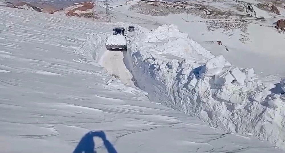 Hakkarinin Yüksekova rayonunda hündürlüyü 5 metri çatan qarda aparılan işlər nəticəsində açılan yollar tunelləri xatırladır.