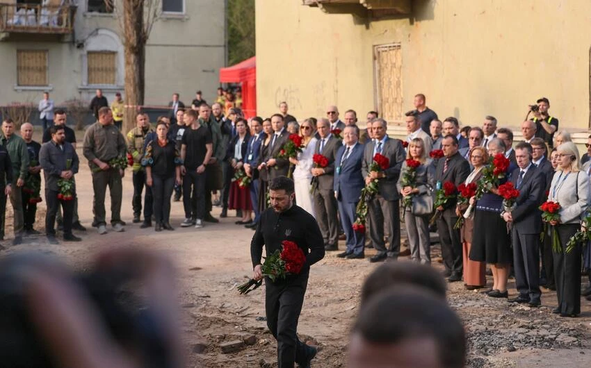 Beynəlxalq nümayəndələr Kiyevdə ballistik raketin düşdüyü ərazidə oldular