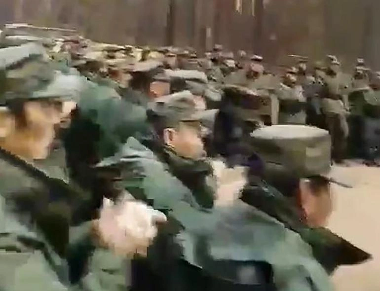 Hərbi düşərgədə çəkilmiş kadrlarda hərbi geyimli əsgər digər əsgərlərə öz liderini devirməyi təklif etdikdən sonra həmyaşıdları tərəfindən utancaq alqışlarla qarşılanıb.