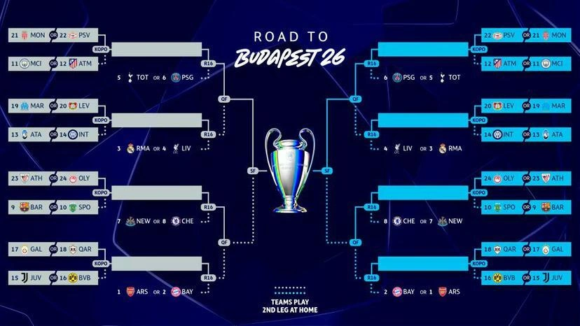 UEFA Çempionlar Liqasında liqa mərhələsi turnir cədvəlində indiki sıralama ilə başa çatarsa, komandaların potensial rəqibləri açıqlanıb.