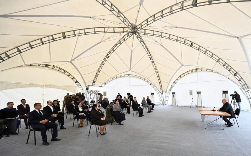 Keçmiş məcburi köçkünlərlə görüşlər indi tamamilə başqa xarakter alıb. Siz bilirsiniz, mən 2003-cü ildən başlayaraq məcburi köçkünlərlə ildə bir neçə dəfə görüşmüşdüm, həm açılışlarda, - çünki 100-dən çox şəhərcik inşa edilmişdir, hər bir açılışda mən iştirak edirdim, - həm də ki, başqa tədbirlərdə. Görürdüm ki, son illər onların gözlərində ümidlər artıq sönür və bu da təbiidir. Neçə il gözləmək olar? Neçə il demək olar ki, Minsk qrupu gəldi, getdi, təklif verdi, erməni qəbul etmədi?! Açıq deməliyəm, neçə il bizim başımızı aldadırdılar. Deyə bilmirdim mən onlara. Hətta müharibə dövründə bir çox müsahibələr verərkən tam planlarımız haqqında danışa bilmirdim. Çünki bu, hərbi sirr idi. Bizim əsas məqsədimiz tam qələbəni qazanmaq, Şuşada bayrağımızı qaldırmaq idi. İndi deyə bilərəm, bu vəzifə müharibənin ilk günündən qarşıya qoyulmuşdu və biz bu vəzifəyə nail olduq.