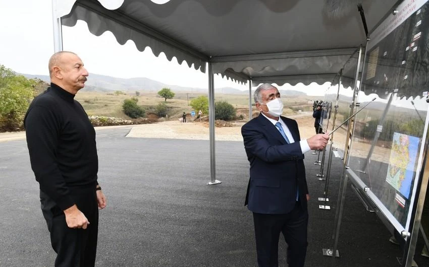 Prezident Hadrut-Cəbrayıl-Şükürbəyli, Tuğ-Hadrut və Füzuli-Hadrut yollarında aparılan tikinti işləri ilə tanış olub-YENİLƏNİB