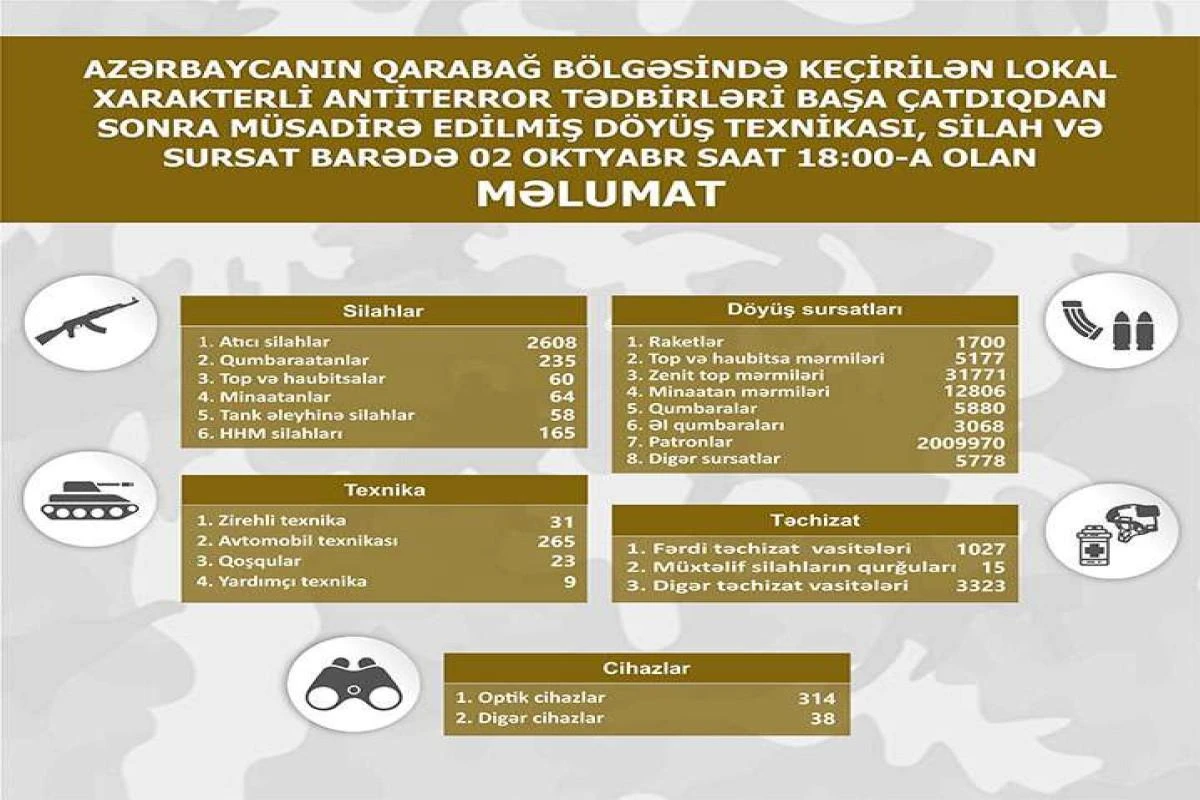 Qarabağda müsadirə edilən döyüş texnikası, silah-sursatın SİYAHISI