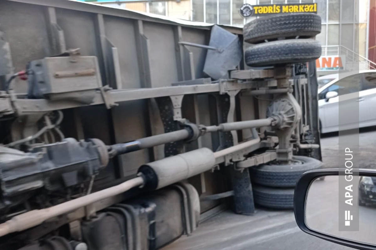 Bakıda yük maşını aşıb - FOTO