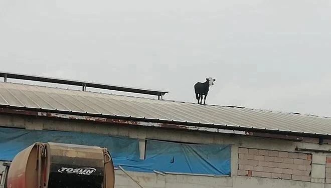 Dana qaçdı: Peyvənddən qorxduğu üçün dama çıxdı