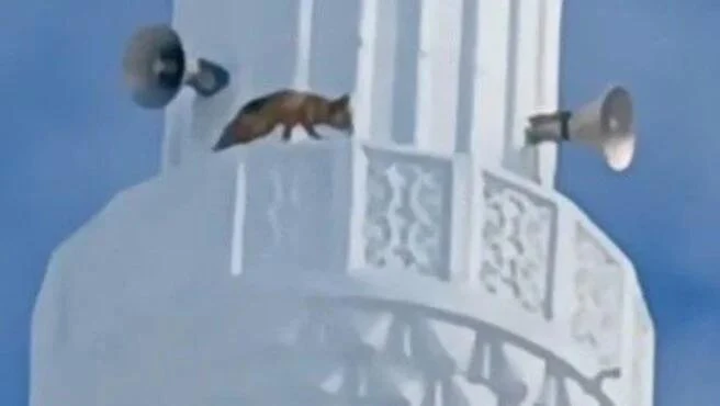 Minarənin ətrafında dolaşan tülkü heyrətə gətirdi