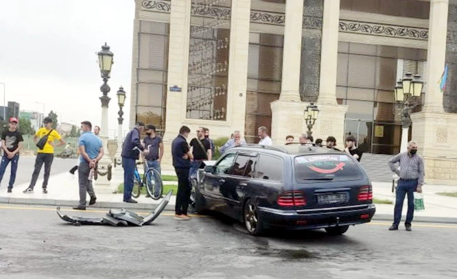 Sumqayıtda "Mercedes" qəza törədib, sürücü yaralanıb - FOTO