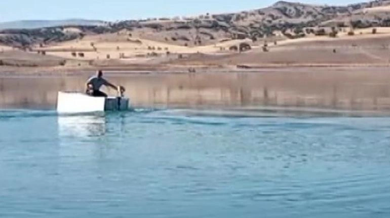 Soyuduculardan qayıq düzəltdi, qorxusuz gəzintiyə çıxır
