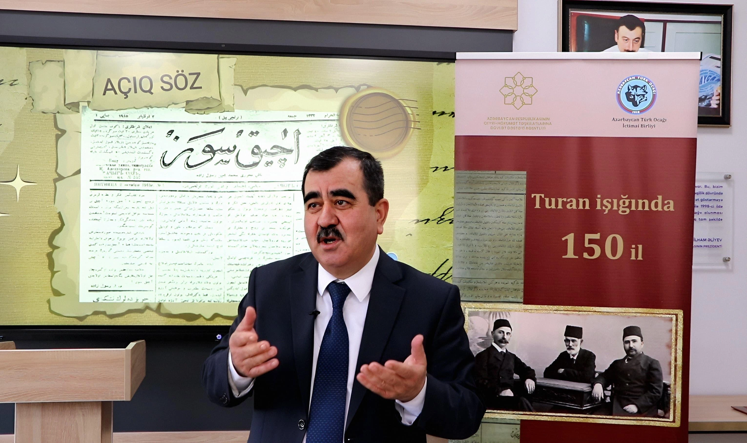Daha sonra Akif Aşırlı çıxış edərək tədbirin “Turan işığında 150 il” adlandırılmasının səbəbini açıqlayıb. O bildirib ki, 1875-ci ildə Həsən bəy Zərdabinin nəşr etdirdiyi “Əkinçi” qəzeti təkcə Qafqazda deyil, bütövlükdə Rusiya imperiyası ərazisində yaşayan türkdilli xalqlar arasında yayımlanan ilk qəzetlərdən biri olub. Bu baxımdan, “Əkinçi” yalnız Azərbaycan mətbuatının deyil, ümumtürk mətbuatının da əsasını qoyan nəşrlərdən sayılır.
