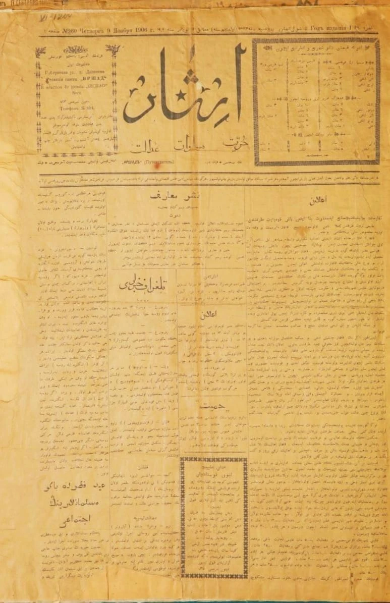 1905-ci ilin dekabr ayının ortalarında Azərbaycan mətbuatı tarixinə iki qəzet qədəm qoydu. Onlardan biri sahibiimtiyazı və redaktoru Əhməd bəy Ağaoğlu olan "İrşad" qəzeti idi. 1905-ci ilin dekabr ayının 17-də ilk sayı işıq üzü görən "İrşad"ın müsəlman və türk dünyasına ünvanlanan "birlik, bərabərlik və qardaşlıq" ideyası ətrafına dövrün tanınan qələm sahibləri cəm oldular. "İrşad" sözünün lüğəti mənası "yol göstərən", yəni yolu işıqlandıran deməkdir.