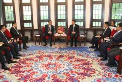 Görüşdə Çin Xalq Respublikasının 2013-cü ildə irəli sürdüyü və Avrasiya ölkələri arasında infrastrukturun inkişafı, qarşılıqlı əlaqələrin gücləndirilməsi məqsədi daşıyan “Kəmər və Yol” təşəbbüsü barədə fikir mübadiləsi aparılıb, layihənin beynəlxalq əməkdaşlığa verdiyi töhfəyə diqqət çəkilib.