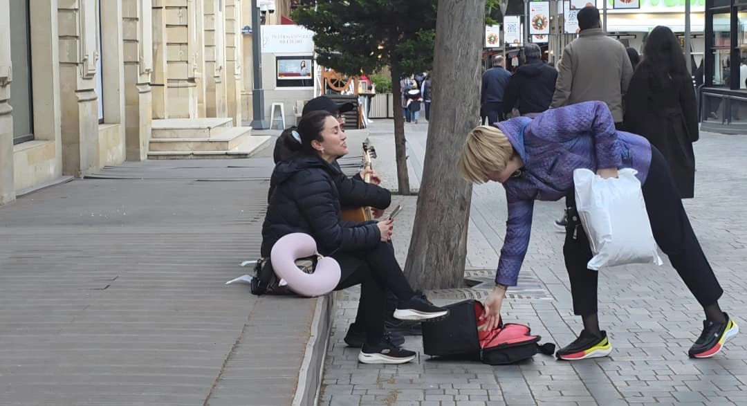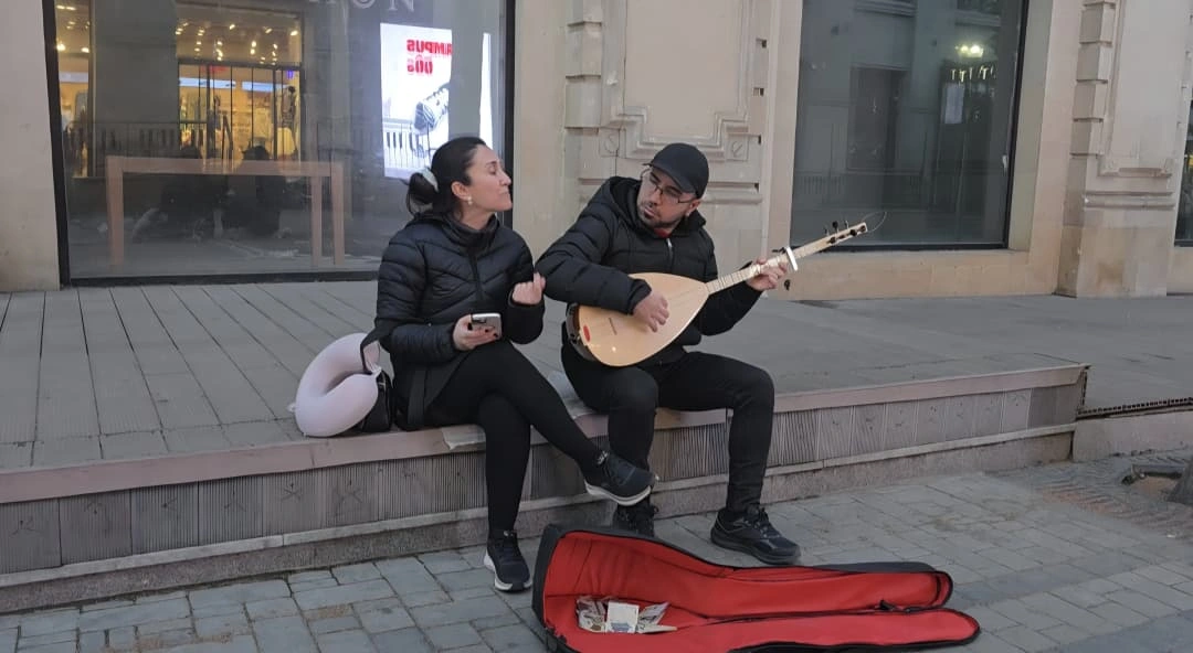 Bakının mərkəzi küçələrindən biri olan Nizami küçəsi (Tarqovu) yenə də insanlarla dolub-daşır. Türkü, yəni Türkiyə xalq mahnısını eşidib dayanırıq. İki nəfərin ətrafına adamlar toplaşıb. Kişi musiqi alətində çalır, qadın isə ifa edir. Səsi o qədər güclüdür ki, mikrofondan da istifadə etmir. Diqqətimizi çəkirlər. Mahnının bitməsini gözləyirik və sonra yaxınlaşırıq.