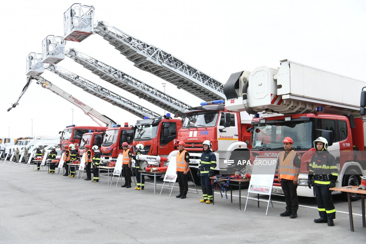 Öncə, Fövqəladə Hallar Nazirliyinin, həmçinin təlimdə iştirak edən digər qurumların texnika və avadanlıqlarına baxış keçirilib.