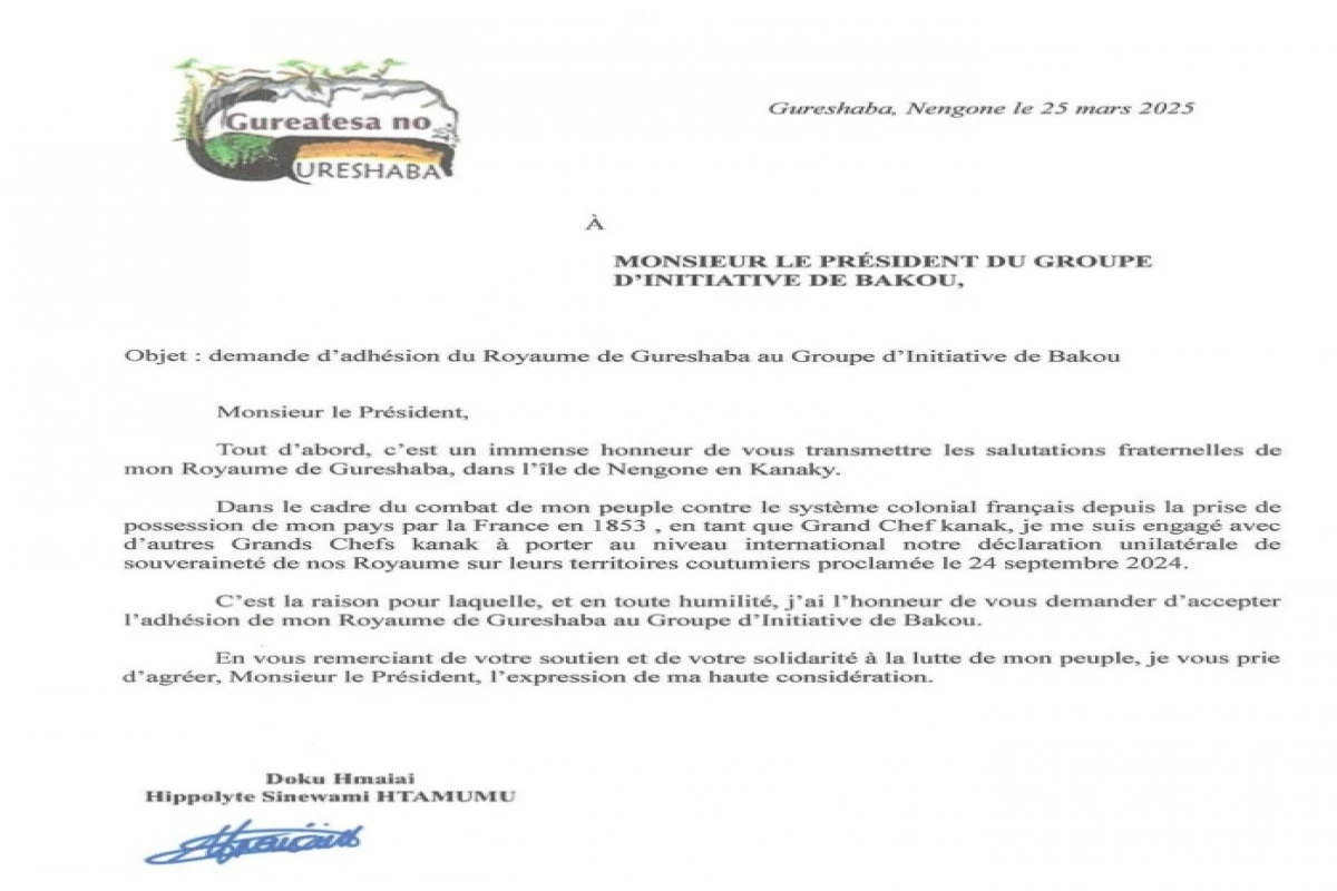 Yeni Kaledoniyada yerləşən Qureşaba Krallığı Bakı Təşəbbüs Qrupuna qoşulmaq üçün müraciət edib