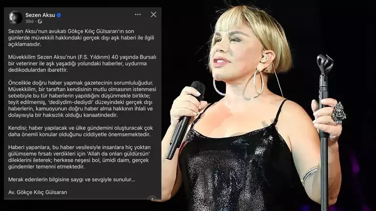 Sherg.az xəbər verir ki, Aksunun vəkili Gökçe Kılıç Gülsaran açıqlamasında, bu xəbərlərin uydurma olduğunu bildirərək, müştərisinin daha vacib mövzulara diqqət yetirdiyini və medianın doğru xəbər vermə məsuliyyətini xatırladığını vurğulayıb. O, həmçinin xəbəri yayımlayanlara “Allah da onları güldürsün” mesajını çatdırıb və hər kəsə xoş əhval-ruhiyyə və ümid arzulayıb.