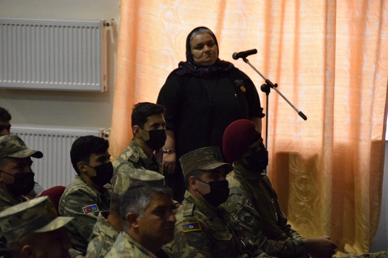 Daha sonra konfrans diskussiya formasında davam edib. Müharibə, Əmək və Silahlı Qüvvələr Veteranları Təşkilatının sədr müavini, polkovnik Cəlil Xəlilov ondan çox şəhid anasının, müharibə veteranının suallarını cavablandırıb, onların müxtəlif məsələlərlə bağlı səsləndirdiyi təkliflər dinlənilib, ümumiləşdirmələr aparılıb.