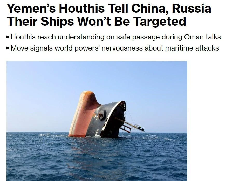 "Bloomberg": Husilər Rusiya və Çin gəmilərinə hücum etməyəcəklər