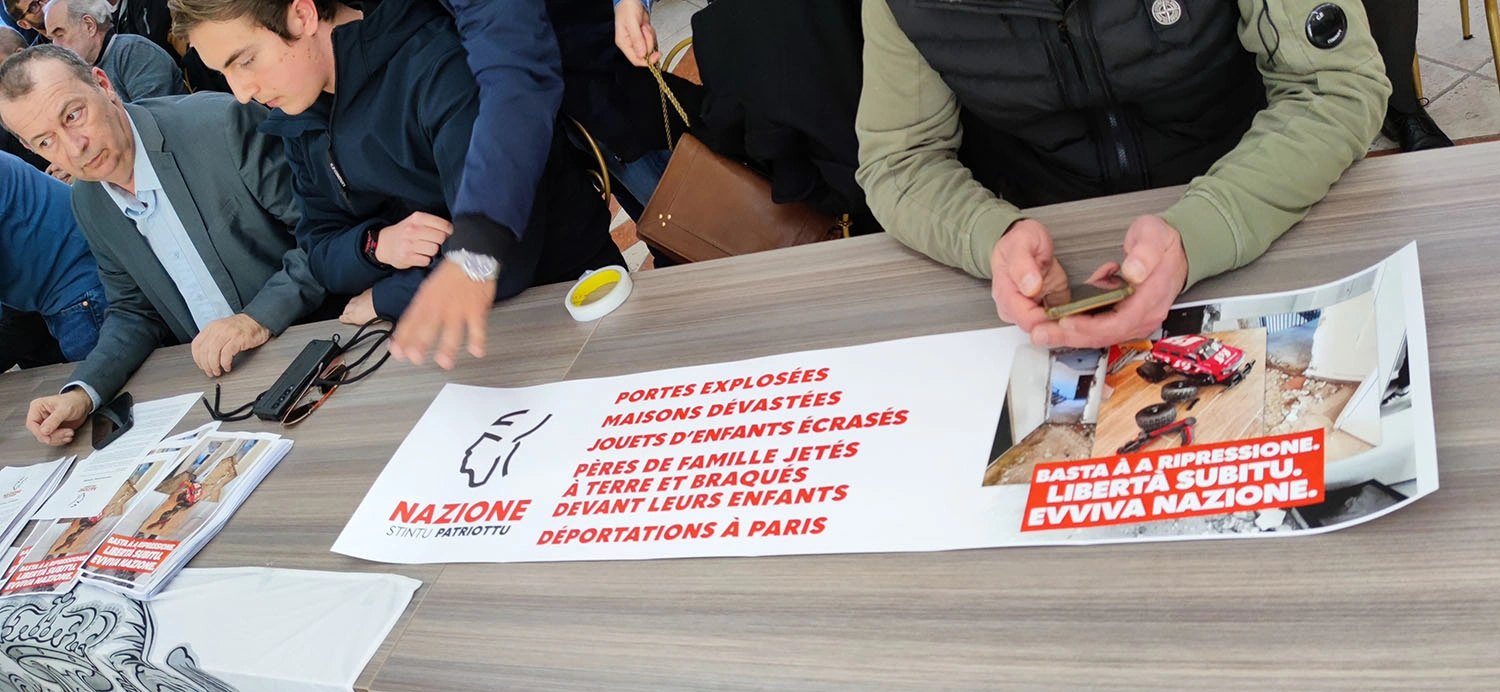 “Nazione” Partiyasının baş assambleyasının ilk iclasından cəmi iki gün sonra Fransa dövləti bu yeni siyasi təşəbbüsün uğuruna yenə də repressiya dalğası ilə cavab verdi, iki fəalımız və milli koordinasiyamızın üzvləri Anto Simoni və Nikolas Pinzuti həbs etdi.