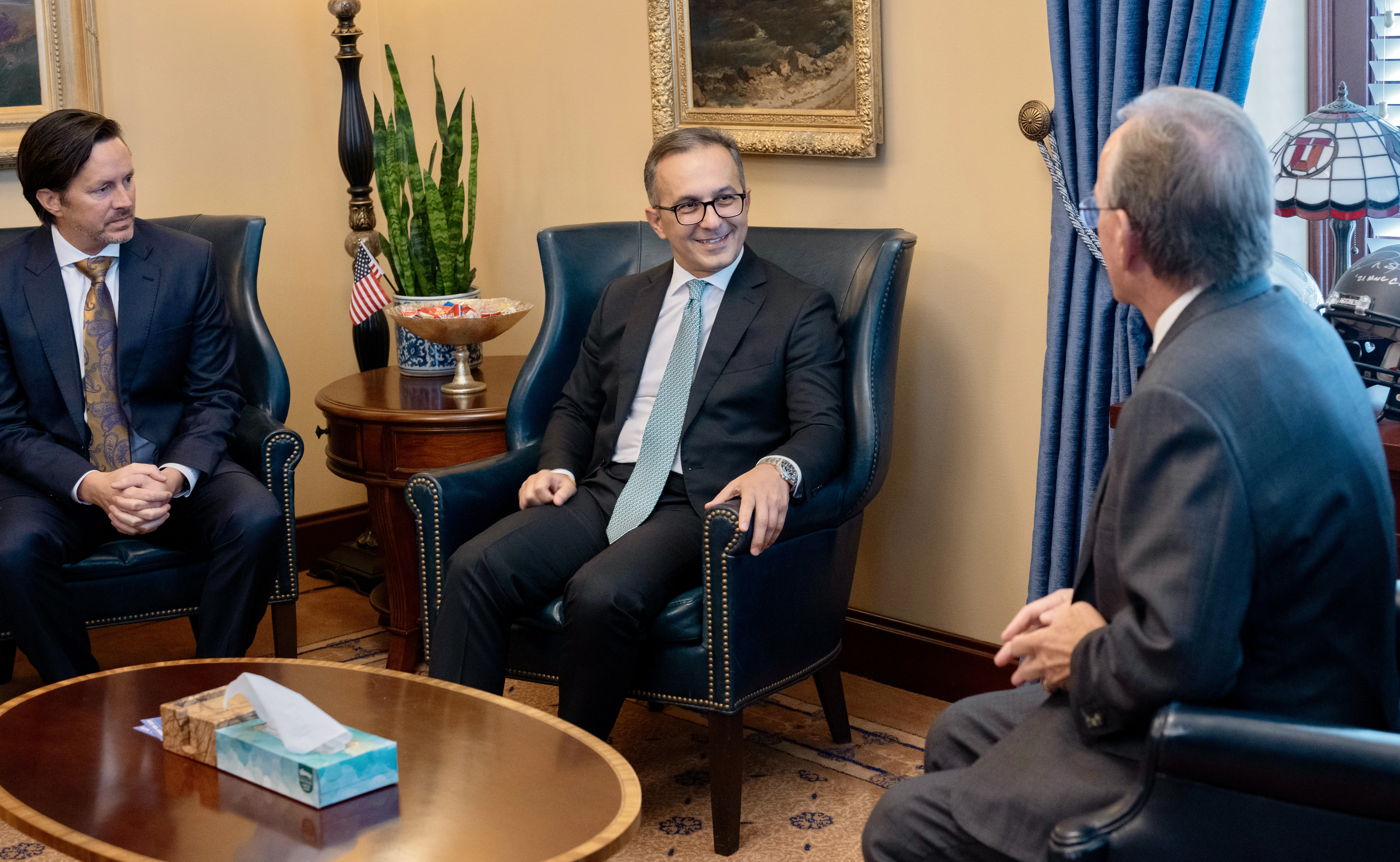 Azərbaycan - ABŞ arasında dinlər və mədəniyyətlərin dialoqu sahəsində əməkdaşlığın perspektivləri ətrafında fikir mübadiləsinin aparıldığı görüşdə Yuta Ştatının senatorları Kirk Kollimor, Mayk Makkel də iştirak ediblər.