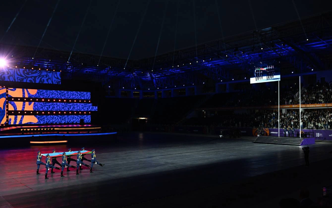 Əvvəlcə Azərbaycan Respublikasının üçrəngli Bayrağı arenaya gətirilib və Dövlət Himnimizin sədaları altında ucaldılıb.