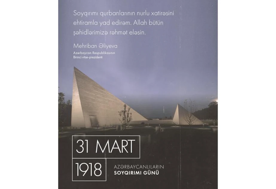 Mehriban Əliyeva 31 Mart – Azərbaycanlıların Soyqırımı Günü ilə bağlı paylaşım edib
