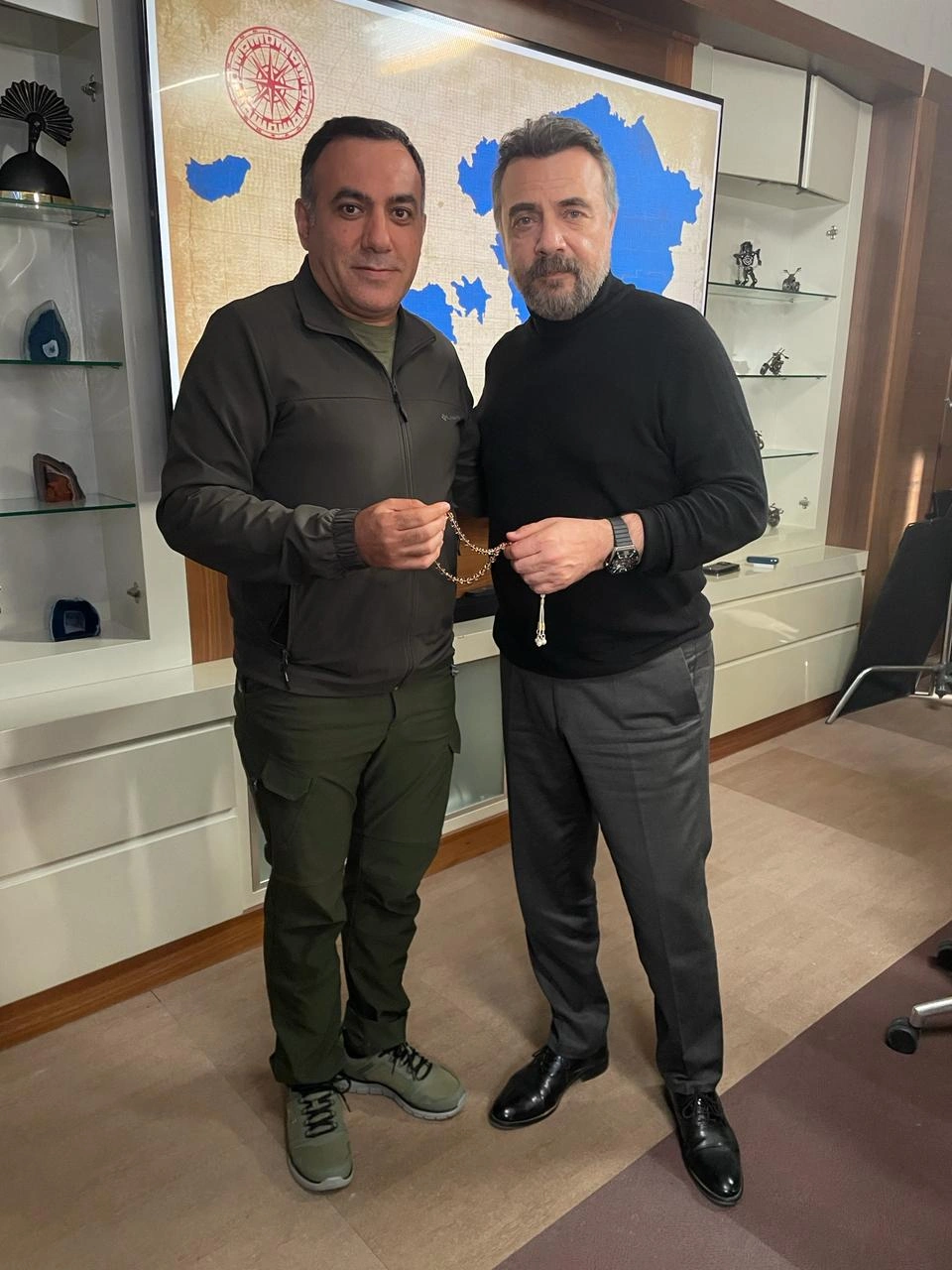 Sonda Oktay Kaynarca Emin Həsənliyə təsbeh hədiyyə edib.