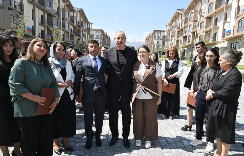 Sonra dövlət başçısı sakinlərə mənzillərin açarlarını təqdim edib.