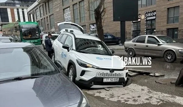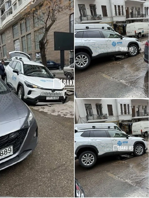 Azadlıq prospektində yol çöküb və AYNA-nın maşını həmin çuxura düşüb.
