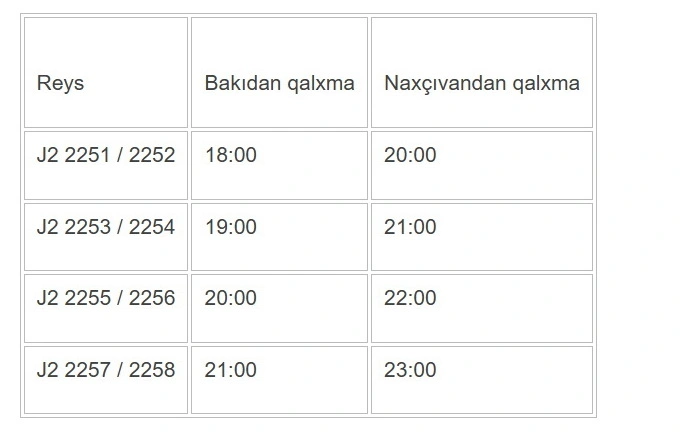 AZAL-ın 9 mart 2026-cı il tarixinə Bakı-Naxçıvan-Bakı marşrutu üzrə planlaşdırılmış uçuş cədvəli: